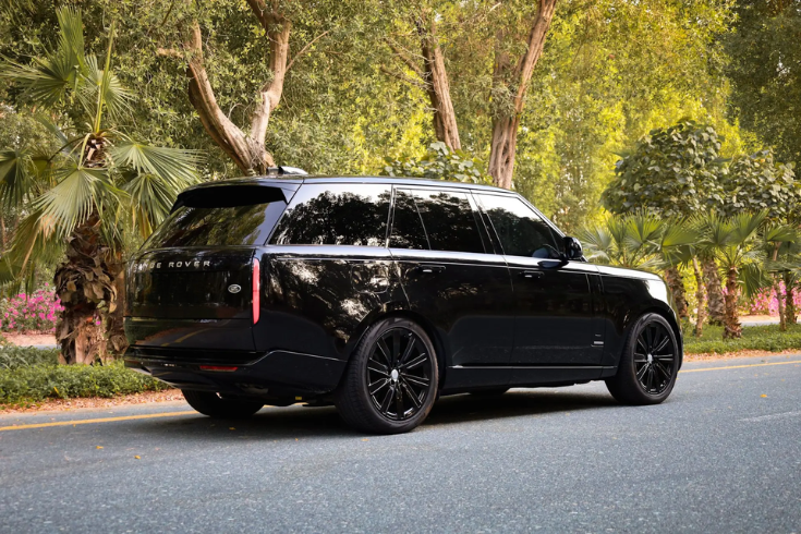 It boasts premium black leather seats, configurable cabin lighting, and illuminated treadplates with the Range Rover script.